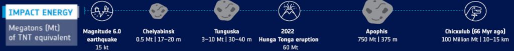 Asteroid impact (Small 1-3) Chelyabinsk meteor ≅ ⌀ 20 meters Tunguska event ≅ ⌀ 65 meters. (LARGE 4-5) Chicxulub asteroid ≅ ⌀ 10 kilometers
