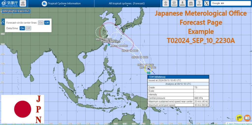 Wikipedia – Typhoon – a tropical cyclone that forms between the International Date Line and 100°E in the Northern Hemisphere. The main RSMC for this region is the Japan Meteorological Agency.