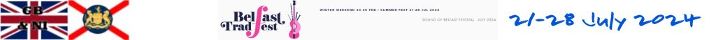 - Belfast Trad Fest (Music Festival) 24 – 26 FEB & 23-29 JULY 2023 Various venues, Belfast city, Co. Antrim, NI.
