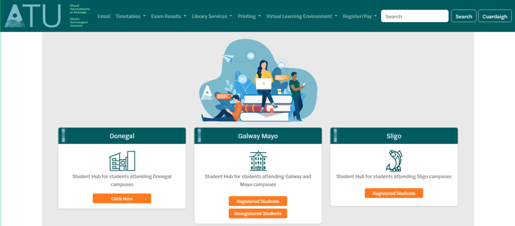Bailey Allen Hall (Áras na Mac Léinn, Student Center), University College Galway University Road, Gaillimh (Galway city) H91 RTR6, Co. Galway, Éire (RoI).