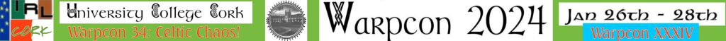 - WarpCon 24 – 26 Jan 2020Áras na Mac Léinn (The Student Center), University College Cork, College Rd, Cork, T12 K8AF Co. Cork, RoI. I attended.