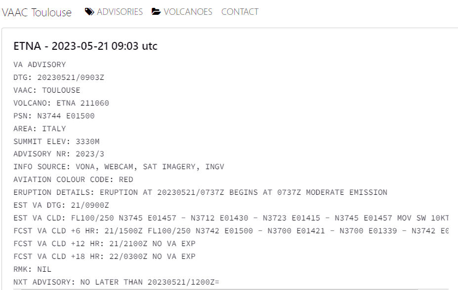 - Toulouse Volcano Ash Advisories