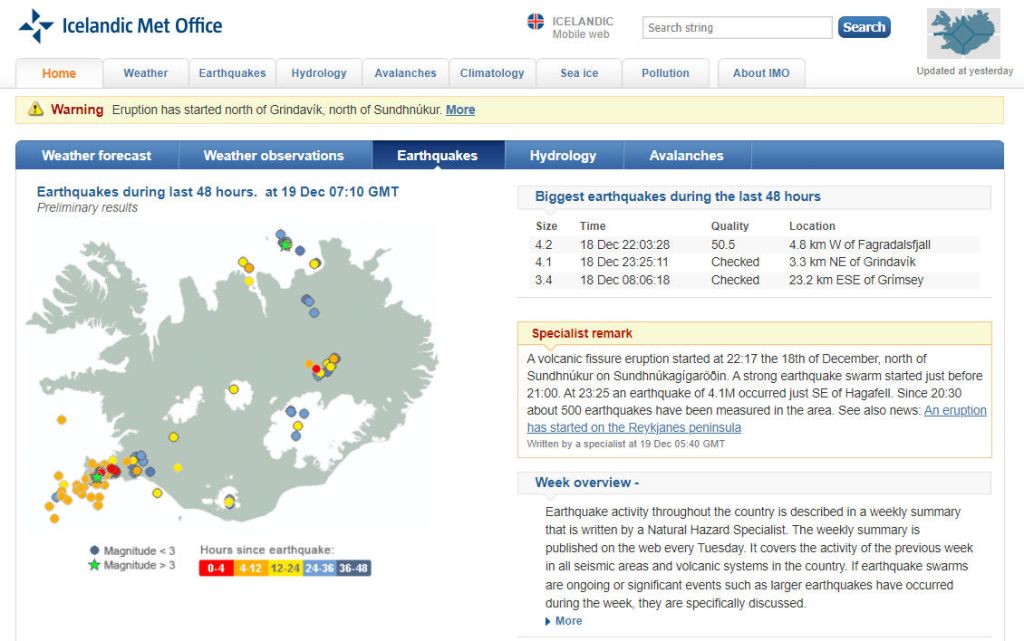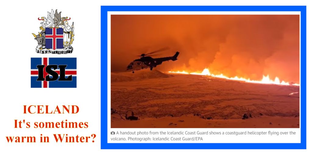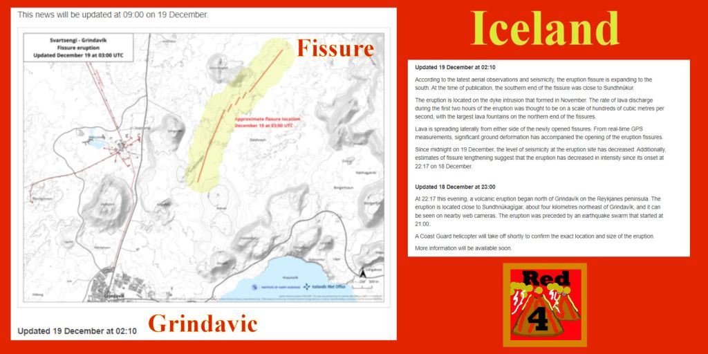 UK SkyNews – Volcano erupts in Iceland after thousands evacuated from town Lava has been emerging from a crack in the earth’s surface which was around 3.5km ( 2 miles) long and had grown rapidly, the Icelandic Meteorological Office said. Tuesday 19 December 2023 03:29, UK