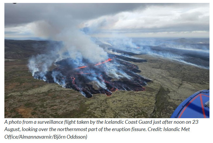 “The estimated length of the fissure opening at Sundhnúkar crater rowis 3.5 kilometers long. It is nearly four times longer than the fissure opening at Litli-Hrútur in July of this year.”