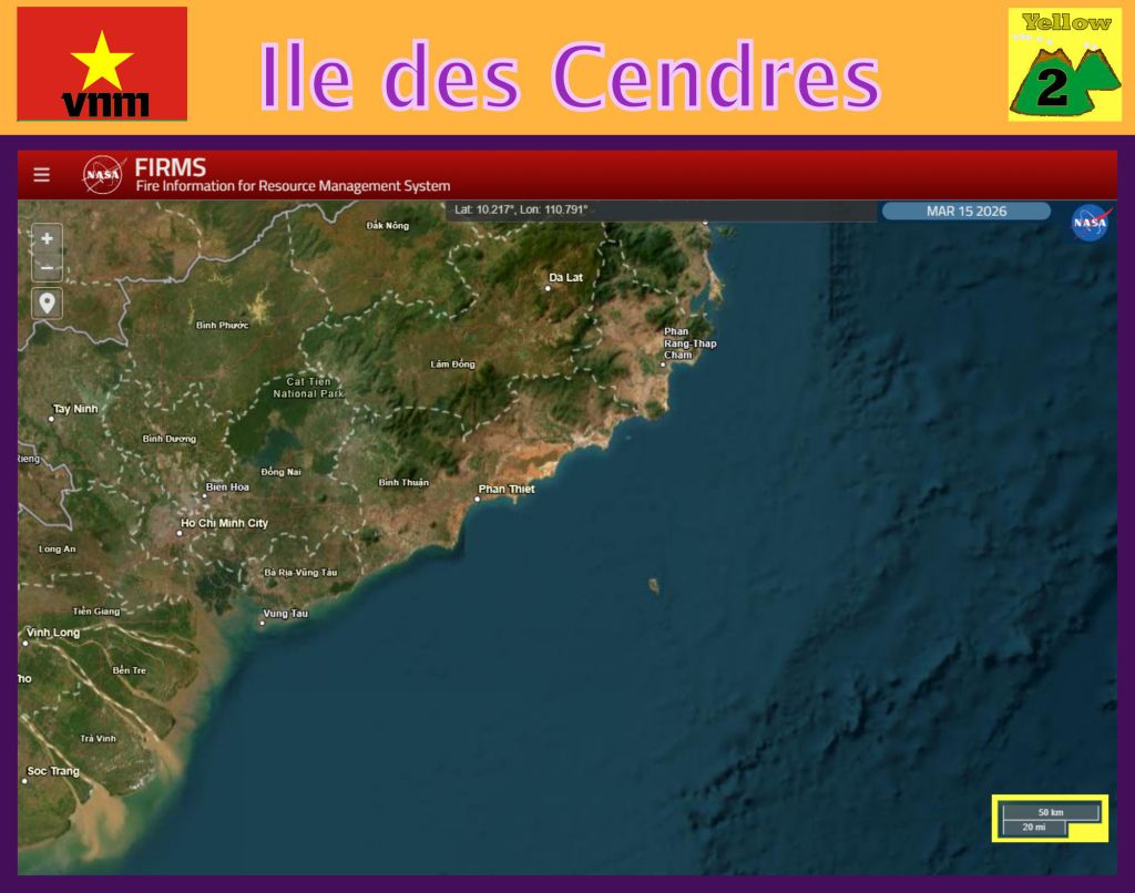 Smithsonian Institute “The 1923 eruption produced two small islands, one about 30 m high and about 450 m long, and the other 30 m wide and 30 cm high. A third submarine cone reached to within 20 m of the surface. Additional submarine cones occur between Ile des Cendres and the Vietnam mainland (Bondarenko and Nadezhnyi, 1989).”