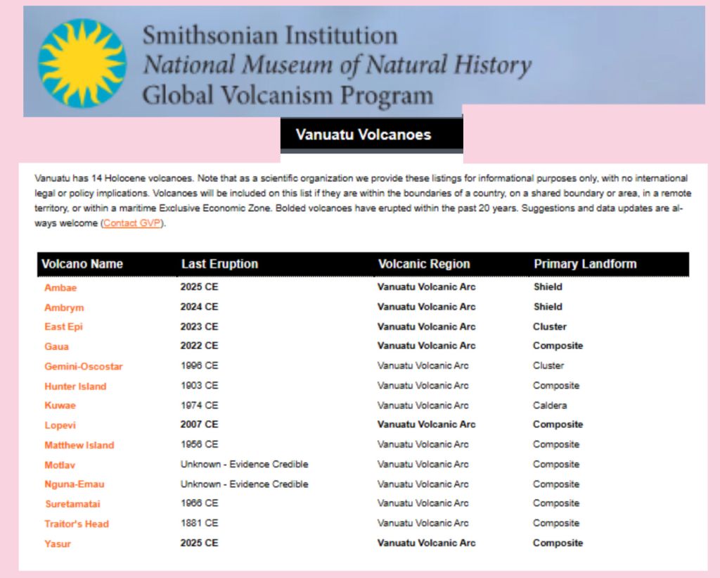 - USA – Smithsonian Institute – National Museum of Natural History Global Volcanism Project – Vanuatu