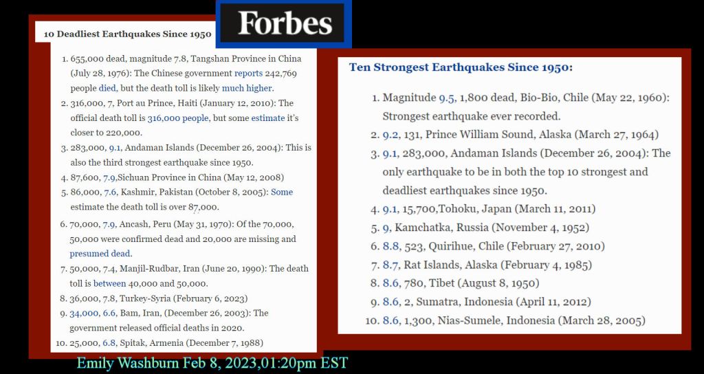Largest Earthquakes of the 20th Century T01900~01999AD