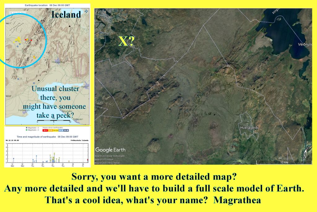 0535am 14 December 2023 Ireland, we’re only at this a few months, so it’s a little embarrassing to be so close to the Hawaiian Volcano Observatory already, we only got a professor last year, some Scandi I think? And this is a Paddy thanking the Scandi, they can do better, I know where they were trained, they spent their time at Warpcon or NetSoc (UCC) or their colleges equivalent and got their exam cheat sheets from the college server. One module in Web design, you’d be better off with an Internet Graphics person, though you’d have to explain the maths to them again. The seismographs, wow. That, that’s class. You put the things where? Oh, in nice soils. They were supposed to go in rocky mountains, they buried them in the lake valleys, easier to dig little holes and near people, roads and stuff, because they don’t like driving to the remote locations and didn’t know that it’s only 5,000 euros to get optical fibre to almost any remote location now. Have fun. it’s a years work by contractor, four weeks if you ask the Defence Forces. They’re not normally allowed lift a fork to a mouth without a written order from the Department, the Department tender and the officer’s not allowed do the work themselves, they might be employable outside after doing an actual job of work with the Defence Forces army technicians under their supervision. Ask one if they’ve ever built a brick wall?