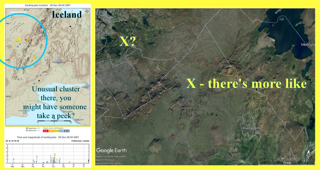 0820am 18 December 2023 Iceland - How do you heat NewGrindavic? Well, ceramic research has been quite successful at identifying new insulating materials and there is loads of hot water (it’s a little hotter than hot water at present?) so moving it is the question. Piping above ground on pipes is the best solution, the pipes being on rubberised platforms for isolation from the “occasional” ground movements. You’re being funny again. Yes, it’s playing with the audience run with it. Now, while some would say make the electricity there, it’s less efficient make it near the homes, however it’s far more efficient to move the water to heat the homes and have solar for electricity in Summer and have back up generators for electricity heating in case of a failure in all of the three hot water pipes to the new location, on separate geographic routes, naturally. How do you pay for it? United Nations? Research for use of VolcoThermoEnergy in Third World countries? There’s quite a few Active Volcano locations and it’s a lot cleaner than fossil fuels. Oh, and we’ll need a new airport and fishing port for NewGrindavic too. (What’s the Islandic for New? Should we future proof and call it Grindavic2?) I want to live in my old house? Well, theoretically, it’s easier just carve up the old houses and cement them together in the new location? Seriously? With trucks and cranes? It’s possible? It’s a matter of cheap labour, does Iceland have a few soldiers available? How old were the houses and was Asbestos used as an insulating material? The modern insulating foam and we only have to use facemasks and safety glasses. The dust is an eye irritant and it tastes horrid. What about the SO2? the moisture condensed in your cloth facemask catches it. Two types of people used scarves over their mouths? Desert people and Arctic people. And arctic people also had visor glasses for stopping snow blindness. They were made of bark or wood. It’s one of the reasons we humans have eyebrows and eyelashes. Research? Check mining lore, “Are your eyes squinting, closing due to an unfamiliar gas?” underground? do you check your gas monitor, canary etc.? Why were the canaries bred to be yellow? Oh, to remind the miners they weren’t just there to keep them company. It’s why the Irish PDF has a nice red square behind their cap badge. And why it’s not on some of our best uniforms, the ones used for parades.