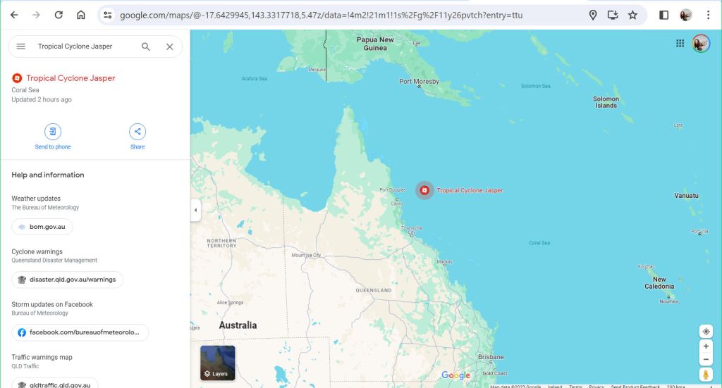 0845am 11 December 2023 Australia The Guardian Tropical Cyclone Jasper: residents and visitors stockpile board games and beer before storm crosses Queensland coast Google? A small bit of work needed?