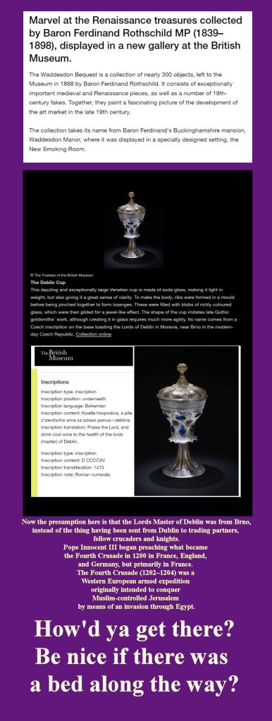 0820am 14 December 2023 Strangely the Irish stuff was mostly in the Victoria and Albert Museum, it being in the United Kingdom in the 1890s, at least it was when I was there, spent 7 days in the British and 7 days in the V&A, it’s a long walk seeing every room in each of them, I could only look at the places a few hours a day, my brain could only take so much excitement. There’s 220 rooms in The British Museum from memory, I bought a nice map, and the book. Masterpieces of the British Museum
