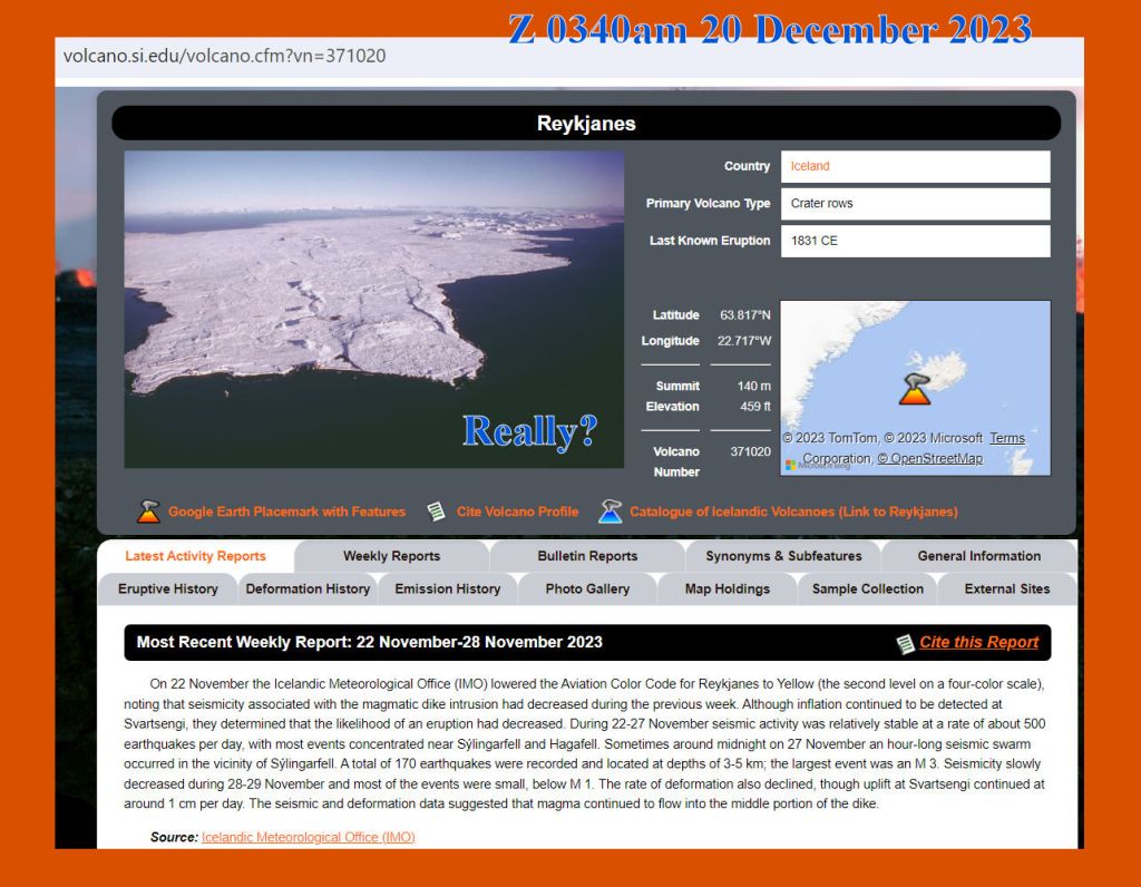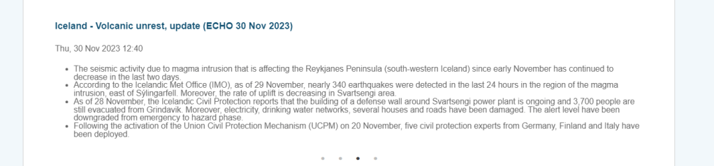 1305pm 19 December 2023 United Nations https://www.gdacs.org/report.aspx?eventid=1000080&episodeid=5&eventtype=VO update to the Islandic Volcanic eruption update this morning, please, and until eruption is concluded, please?