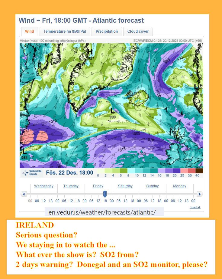 0735am 20 December 2023 Ireland – Iceland and whatever came out of that volcano? The wind is blowing our way? Friday 22, though I’d recheck tomorrows forecast too?
