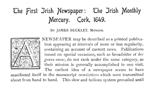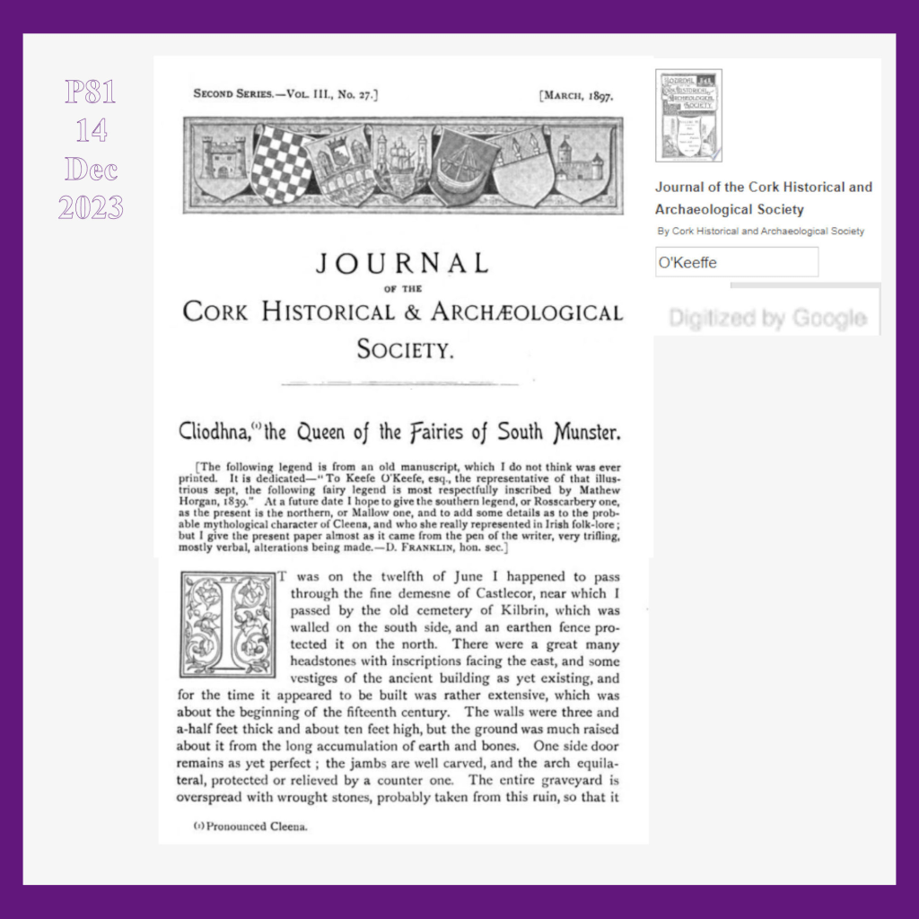 1140am 14 December 2023 Ireland – Remember that history of Newspapers? There’s a nice story in here about the O’Keeffe and Cliodhna Journal of the Cork Historical and Archaeological Society